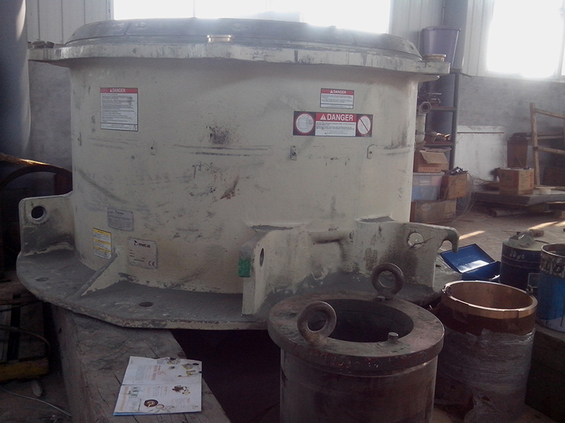 2014-06-08 客戶HP500 破碎機(jī)運(yùn)行中發(fā)生主軸斷裂,運(yùn)到我公司進(jìn)行維修。我司技術(shù)人員拆除主軸后發(fā)現(xiàn)主軸錐孔超差,然后對(duì)主機(jī)架進(jìn)行補(bǔ)焊、重新加工,最后安裝新主軸。