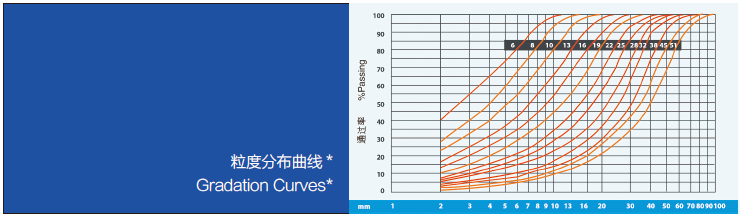 *曲線上的數字為排料口尺寸,方孔篩篩析。
